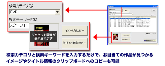 「Amazon.co.jp」の商品データベースを使ったジャケット画像検索機能に加え、インターネット画像共有サイト