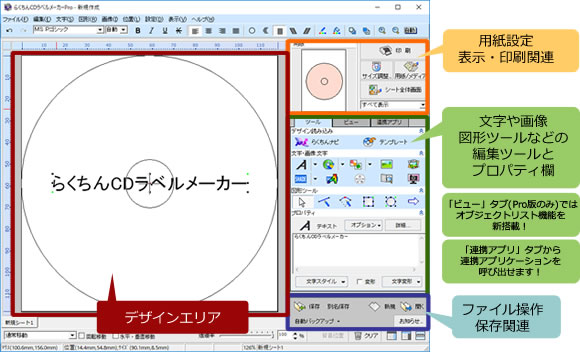 Pro版には、ラベルに配置されたオブジェクト(写真や図形、文字など)を一覧できる「ビュー」タブが搭載されています。