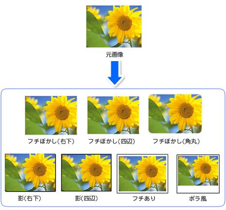 「画像のフチぼかし」や「画像に影をつける」機能に対応しています。