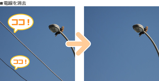 ココを消す![写りこんだ不要なものを除去]