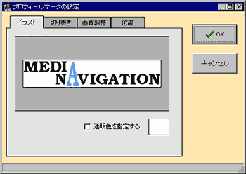 「透明色を指定する」のチェックボックスにチェックを入れると、カーソルがスポイトツールに変化しますので、透明色に指定したい色の部分を選びます。