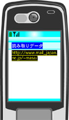 URLのQRコードを携帯電話で読み込むと、左図のように表示されます(機種によって表示内容は異なります)。