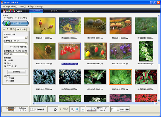 「らくちんフォト検索」は、インターネット上の写真共有サイトからキーワードによってまとめてダウンロードできるソフト(別売※1)です。