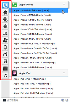- ステップ 2. "all" をクリックして、変換したいデバイスを選択して、出力形式を選択してください。