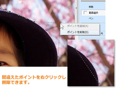 クリック操作で点をつないで切り抜き範囲を決めるだけ。