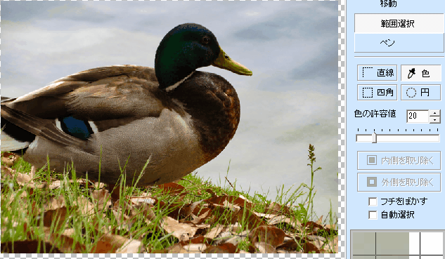 「らくちん写真カッター3の色選択機能は、近似色を選択するだけではなく、同時に対象物の輪郭も検知します。