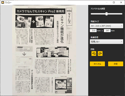対象となる文書の用紙サイズが不明な場合や、プレビューを見ながら調整をしたい時のみ利用します。※アスペクト比の設定をすると「用紙サイズ」および「画像の最適化」は利用できません。